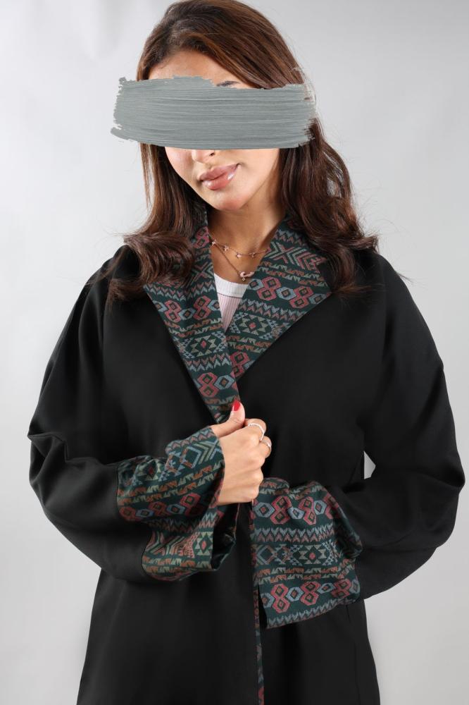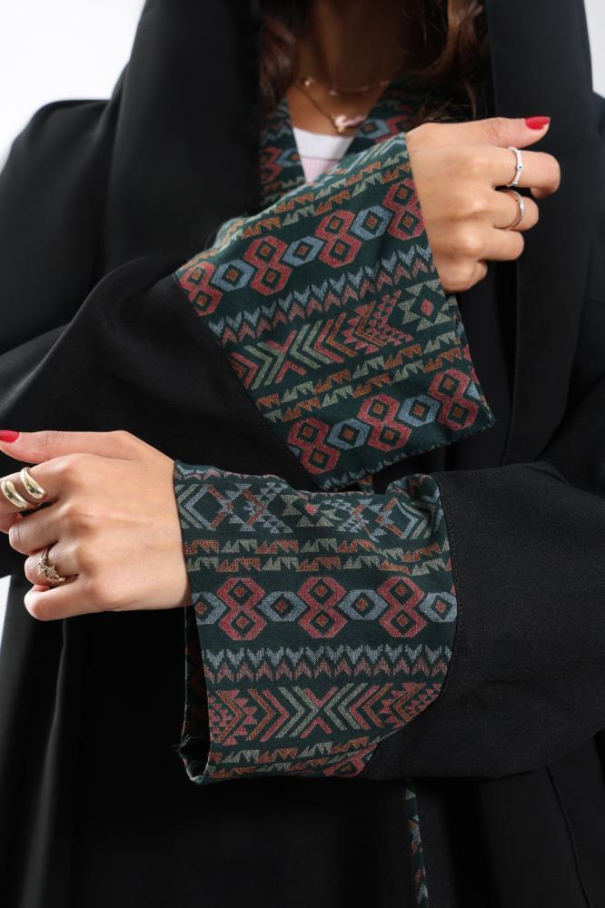وصف المنتج : عبايه بقصه اللاين بقماش النمر مع تطريز زاهي على الصدر والاكمام