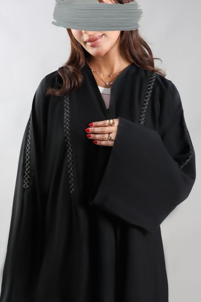 وصف المنتج : عبايه بقصه نص كلوش بقماش ناعم مع تطريز اسود راقي على الصدر والكتف